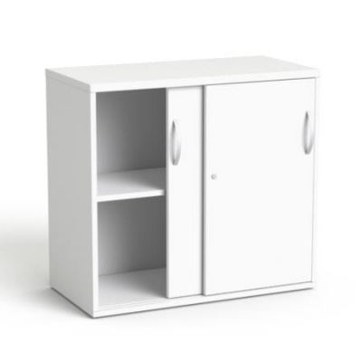 Szekrény, asztalmagas, tolóajtós, polcos, MAYAH "Freedom SV-16", fehér