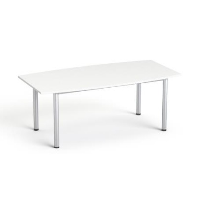 Tárgyalóasztal, íves, szürke fémlábbal, 80/95x190 cm, MAYAH "Freedom SV-43", fehér