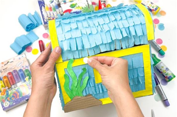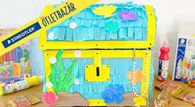 A STAEDTLER részletes útmutatójával egyszerűen elkészíthetjük ezt a különleges, kincsesláda formájú pinyátát, ami garantáltan feldobja a szülinapi partit.