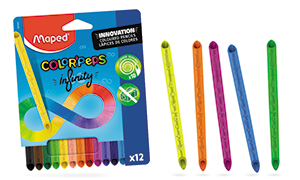 Azoknak pedig, akik szeretnék élvezni a végtelen színezés örömét - anélkül, hogy a ceruzáik hegyezésével kellene megszakítaniuk az alkotást - ajánljuk a MAPED „Color`Peps Infinity” terméket, mely 100%-ban színesceruzahegyből áll, kialakításának köszönhetően önmagát hegyezi, ezáltal teljesen hulladékmentes.