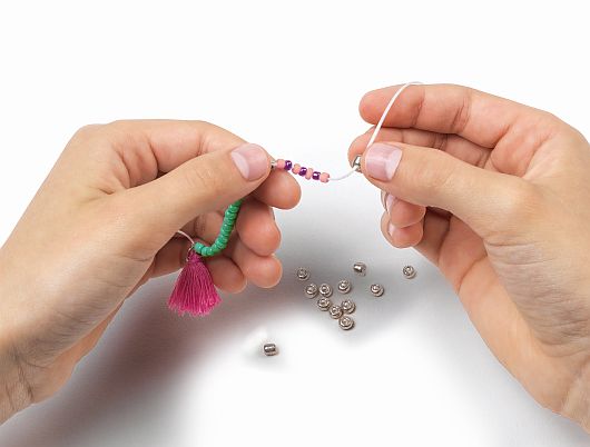Két könnyen elsajátítható technikával akár 16 színes, divatos karkötő készíthető tele gyöngyökkel, medálokkal.