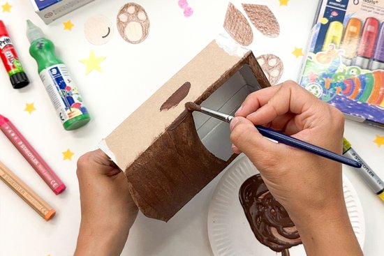 3. Egy ecset segítségével fessük barnára a tejesdoboz egészét.