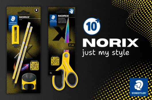 Kiskamaszkortól az iskolai eszközigények nagyban egyszerűsödnek, azonban egy új fontos szempont lép az előtérbe – a menő kinézet! A Noris termékcsalád nagytestvére a Norix kifejezetten a tinik számára jött létre: egyedi csapott formája ergonomikus tartást biztosít, míg barázdált felülete biztos fogást nyújt hosszabb rajzolás és írás esetén. Ami pedig a lényeg, fekete és élénk színekből kombinált megjelenése igazán trendi!