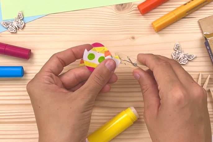 Tipp: Ha szeretnél egy kis meglepetést is belecsempészni, ragassz egy apró csibét vagy nyuszit a tojás alsó fele mögé.