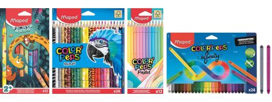 A legkisebbeknek a 12 élénk színben elérhető „Jungle Fever” színesceruza-készletet ajánljuk, amely vidám mintájával biztosan minden apró művész szívébe belopja magát. Az állatok nyelvén értők a „Color`Peps Animal” 24 elbűvölő színével, míg a pasztell árnyalatok szerelmesei a „Color`Peps Pastel” lágy színeivel kelthetik életre a papírt. A határtalan színezés nem kerüli el azokat, akik az „Infinity” készletekre teszik le a voksukat, hiszen kialakításuknak köszönhetően színezés közben hegyeződnek, így akár 10-szer tovább tartanak hagyományos társaiknál.