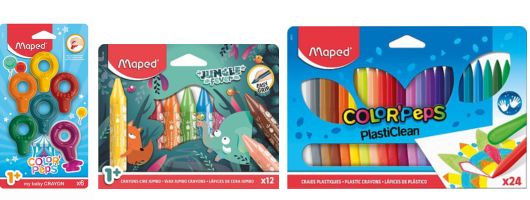 A „Color`Peps Baby” zsírkréták megkönnyítik az első rajzok elkészítését, és játékra csalogatnak, így már egészen apró kortól ajánljuk. Az eggyel nagyobb korosztály számára tervezett „Jungle Fever” kollekció zsírkrétái fejlesztik a kreativitást és a képzelőerőt. Vidám mintájú papírbevonata gondoskodik a kezek tisztántartásáról. A nagyobbak számára ideális a 24 varázslatos színben elérhető „Color`Peps PlastiClean” zsírkréta, amely lapos végének köszönhetően satírozásra alkalmas.