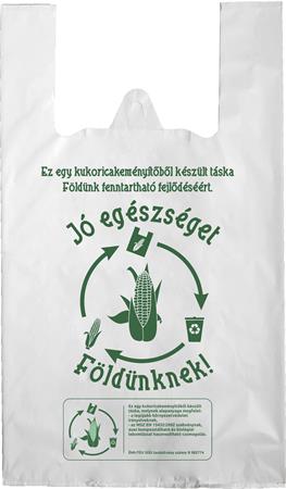Környezetbarát, komposztálható, biológiai úton lebomló (PLA), megújuló forrásból származó, kukoricakeményítő alapú ingvállas táska.