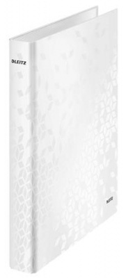 Gyűrűs könyv, 2 gyűrű, D alakú, 40 mm, A4 Maxi, karton, LEITZ "Wow", fehér