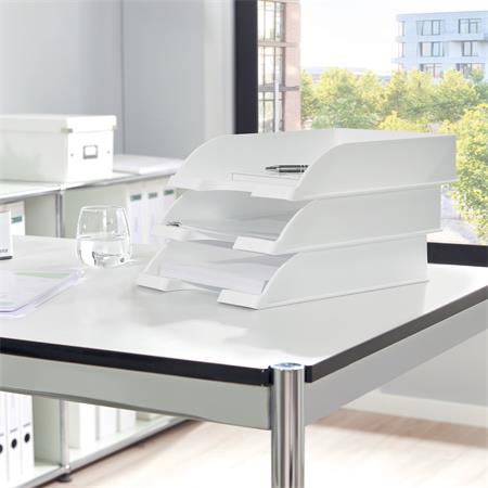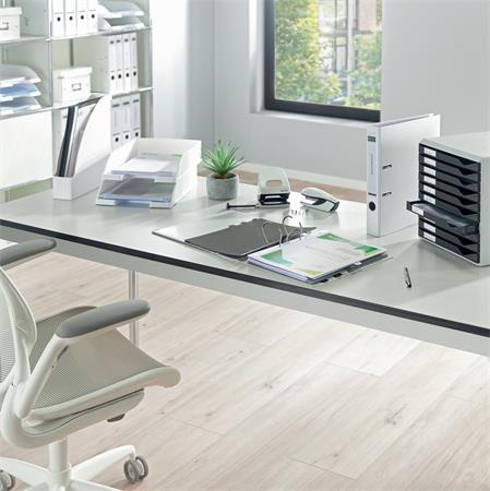 - a Leitz Plus moduláris irattálca rendszer részeként tetszőlegesen kombinálható a többi Leitz Plus irattálcával vízszintes vagy lépcsőzetes elrendezéssel