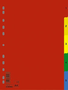 Regiszter, műanyag, A4, 1-5, DONAU, színes