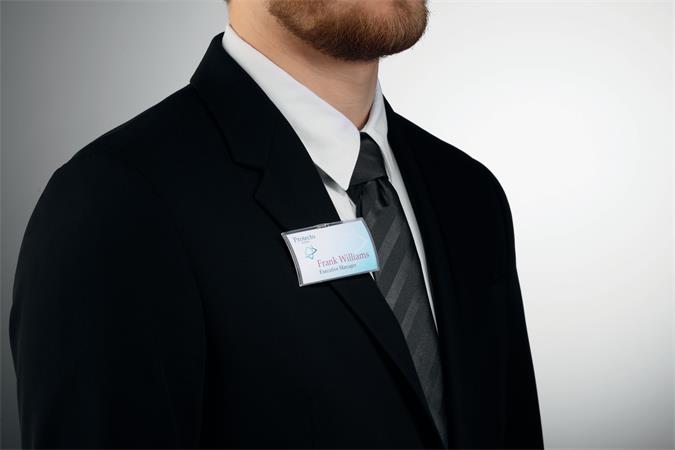 -speciális mágneses rögzítéssel (megakadályozza, hogy a névtábla elforduljon, elcsússzon vagy meglazuljon viselés közben)