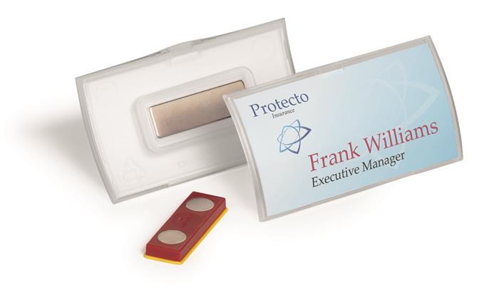 Névkitűző, mágnessel, elfordulásgátlóval, 75x40 mm, DURABLE "CLICK FOLD"