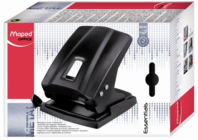 Lyukasztó, kétlyukú, 45 lap, fém, MAPED "Essentials 45", fekete