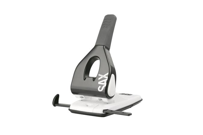 Lyukasztó, nagyteljesítményű, kétlyukú, 65 lap, SAX "Design 618", fekete