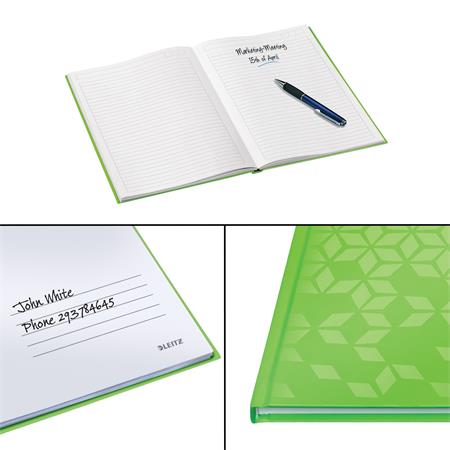 Beíró, A5, vonalas, 80 lap, keményfedeles, LEITZ "Wow", zöld
