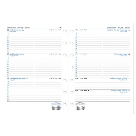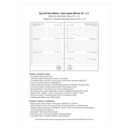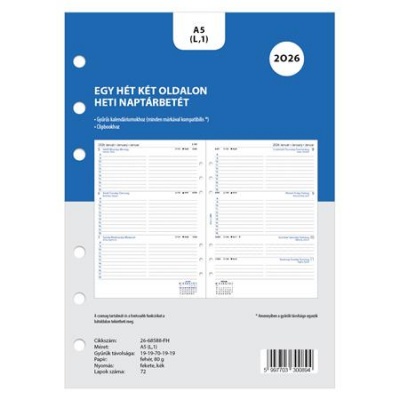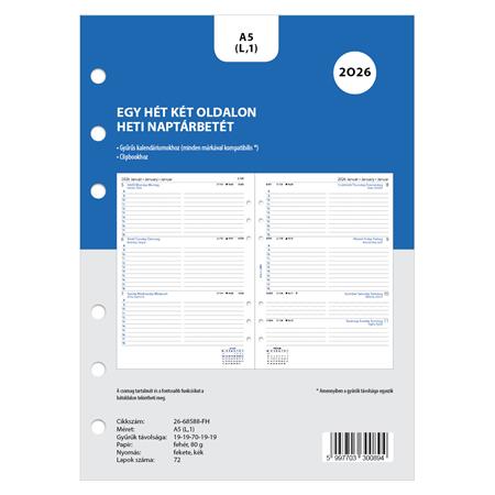 Kalendárium betét, tervező, Filofaxhoz, A5, heti, 1 hét/2 oldal, 2026