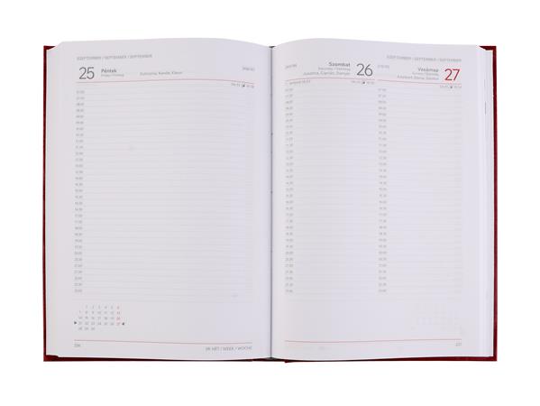 A Victoria Office "Chrono" napi beosztású tervezője nélkülözhetetlen társ az üzleti- és a magánéletben. Klasszikus megjelenése és színválasztéka észrevétlenül illeszkedik minden környezetbe. Praktikus kialakításának köszönhetően tökéletes választás a feljegyzések vezetésére, tervezésre.