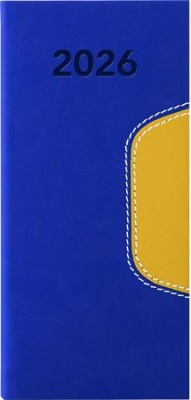 Zsebnaptár, fekvő elrendezésű, DAYLINER, "Memphis", kék-sárga