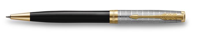 Golyóstoll, 1 mm, metál fekete tolltest, arany klip, PARKER "Royal Sonnet Premium", fekete