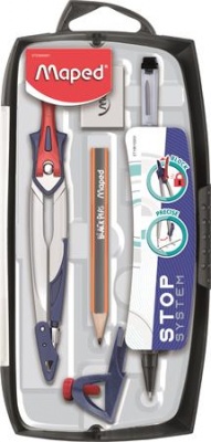 Körző készlet, rögzíthető lábakkal, 7 darabos, MAPED "Stop System"