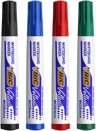 Flipchart- és táblamarker készlet, 1,4 mm, kúpos, BIC" Velleda ecolutions", 4 különböző szín