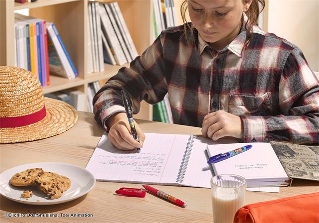 Rollertoll készlet, 0,35 mm, nyomógombos, PILOT "Frixion Ball"/"Frixion Ball Plus", 3különböző szín+One Piece matrica