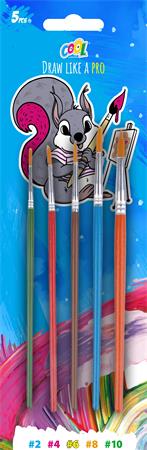 Ez az összesen 5 darab különböző méretű (2-4-6-8-10) ecset akár festett, akár natúr fanyelű, kiválóan megfelel iskolai használatra, de az otthoni kreatív hobbi alkotások terén is megállja a helyét. Az alapanyaguk szintetikus ecsetszőr, amely hosszú ideig formatartó, nem hullik, és ami a legtöbb technikánál remekül beválik, mivel jól felveszi a festékanyagot és kellően puha ahhoz, hogy szép, egyenletes vonalakat húzzunk vele.