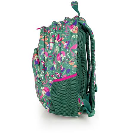 Hátizsák, iskolatáska, cipzáras, GABOL "Vida", zöld, trópusi mintás