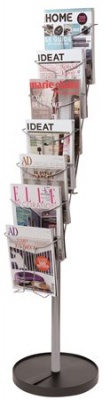 Fémhuzalos szerkezetének és a lépcsők kialakításának köszönhetően könnyen látható tartalom - az ALBA katalógustartóinak fő jellemzője.