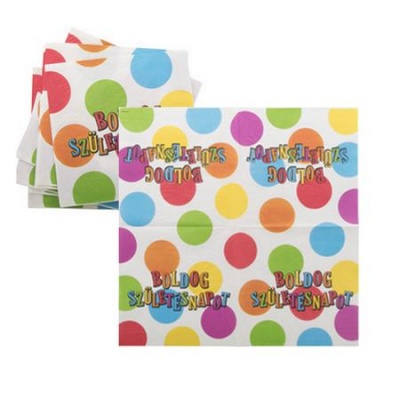 KezdőlapÜzemeltetésAjándékok és party kellékekParty kellékekSzalvéta, 33x33cm, "Boldog születésnapot", csíkos-pöttyös
