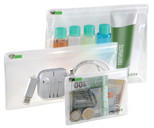 KezdőlapÜzemeltetésHigiéniai termékekPipere tasakok és táskákUtazótasak, vegyes méret, cipzáras, LEITZ "Complete Zip"