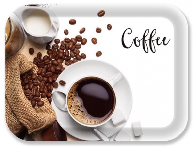 KezdőlapÜzemeltetésKonyhai termékekEgyéb konyhai felszerelésekTálca, szögletes, műanyag, kávé mintás, 33x24,5 cm