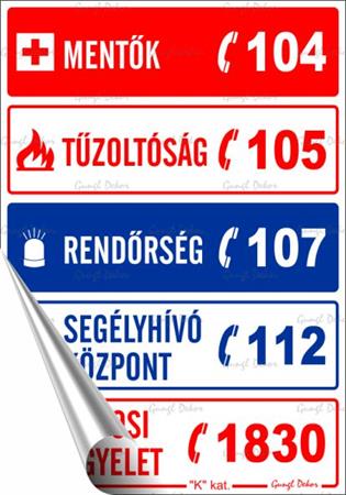 Információs matrica, 11,6x16,6 cm, "Segélyhívószámok"