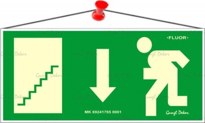 KezdőlapÜzemeltetésLétesítmény üzemeltetésInformációs és tájékoztató jelekInformációs tábla, 25x11,5 cm, fluoreszkáló, utánvilágítós, "Menekülési irány le, lépcső balra"