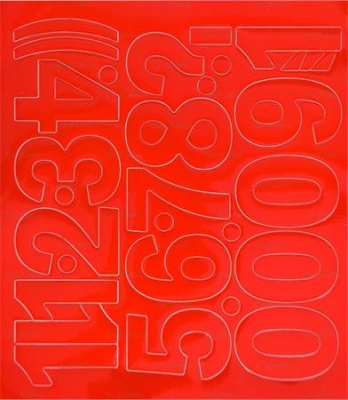 Öntapadós vinil tapétából hőpréssel stancolt számlap.