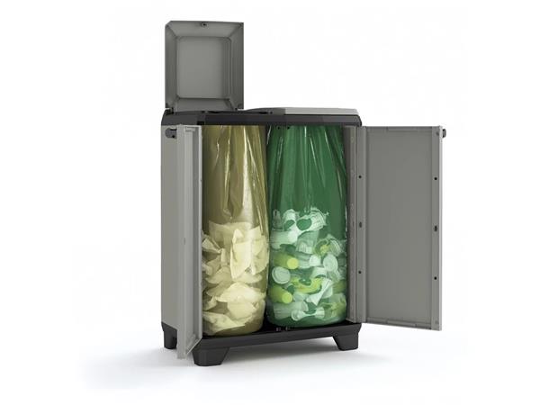 Szelektív hulladékgyűjtő szekrény, műanyag, KETER "Planet", szürke/fekete
