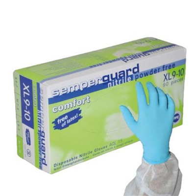 Védőkesztyű, egyszer használatos, nitril, XL méret, 90 db, púder nélküli