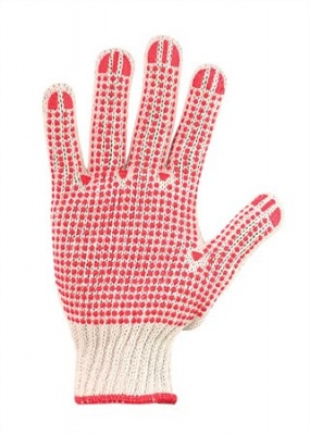 Védőkesztyű, kötött, csúszásgátló pöttyökkel, 7 méret, fehér/piros
